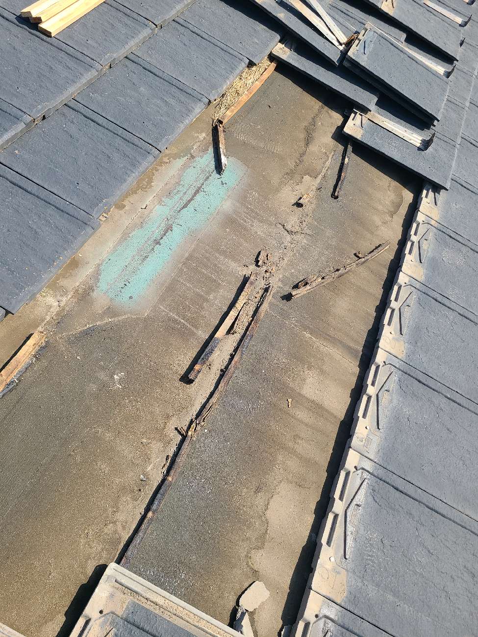 さっそく屋根職人に屋根に登っていただきズレていた瓦を慎重に剥がしてみると、内部の状態は予想以上に深刻でした。