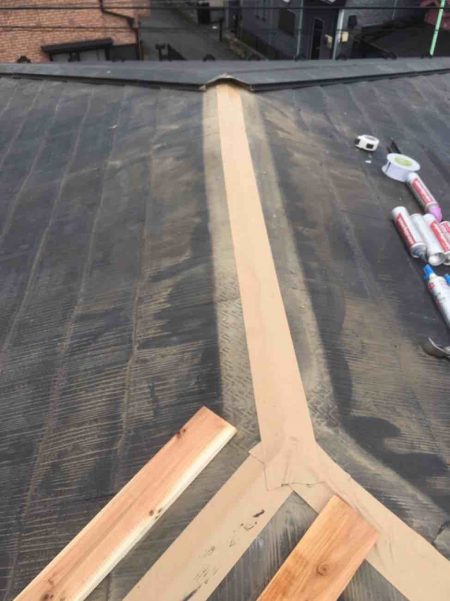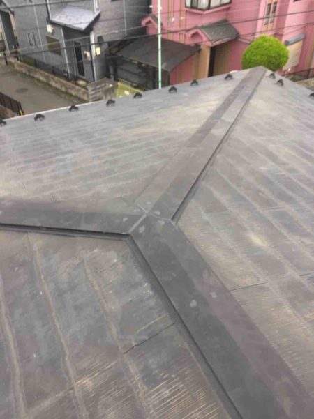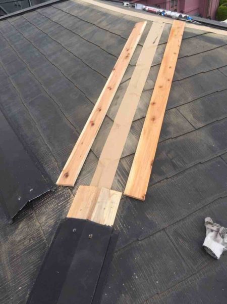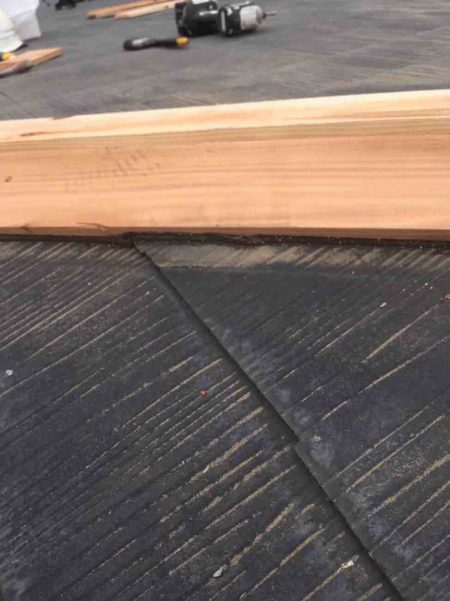 コロニアルを剥がして葺き替えれば原因もわかるのですが、結構な費用もかかりますのでまずは棟の下地交換と屋根コロニアルにタスペーサーを入れて様子を見ることをご提案させていただきました。