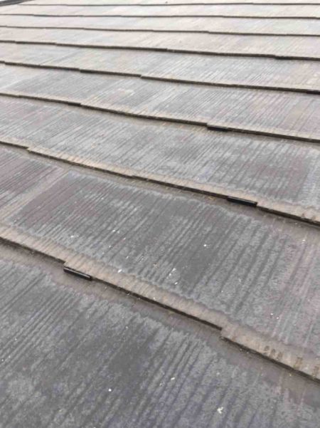 他社にて新築、10年ほど前に他社にて外壁屋根塗装をされたとのことでした。屋根に登って確認したところ、コロニアル屋根にタスペーサーがありませんでした。また棟に釘がたくさん打たれており、ところどころ釘が浮いているところやシールが劣化している部分がありました。