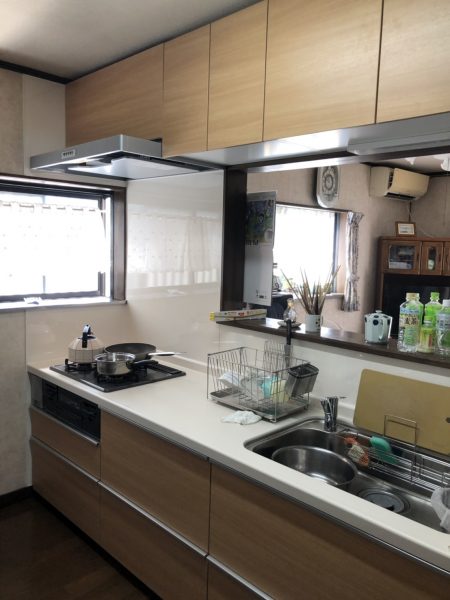 今までのキッチンが作業スペースやシンクが狭く落ちない汚れも多くなり設備を新しいものに一新したいとご要望を受けてTOTOのシステムキッチンを導入することをご提案しました。
