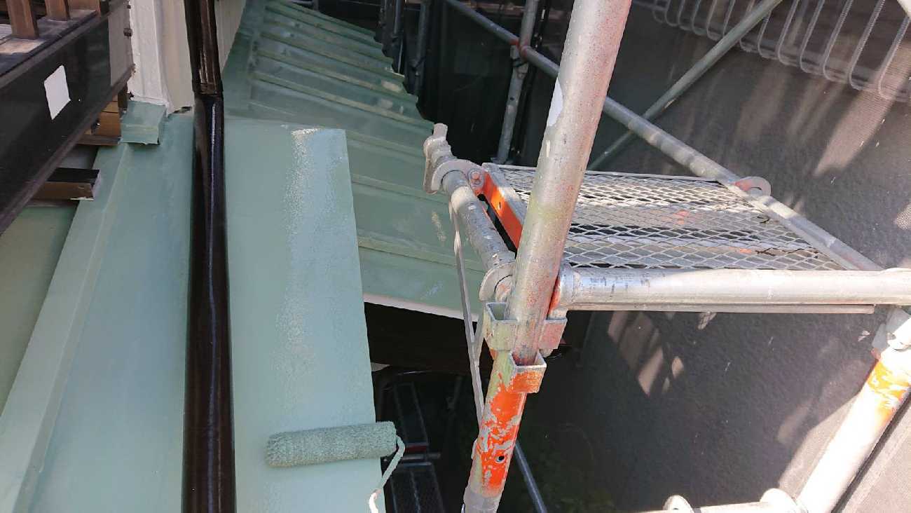 下屋根 下塗り サビカット 中塗り・上塗り ユメロックルーフ 32㎡
