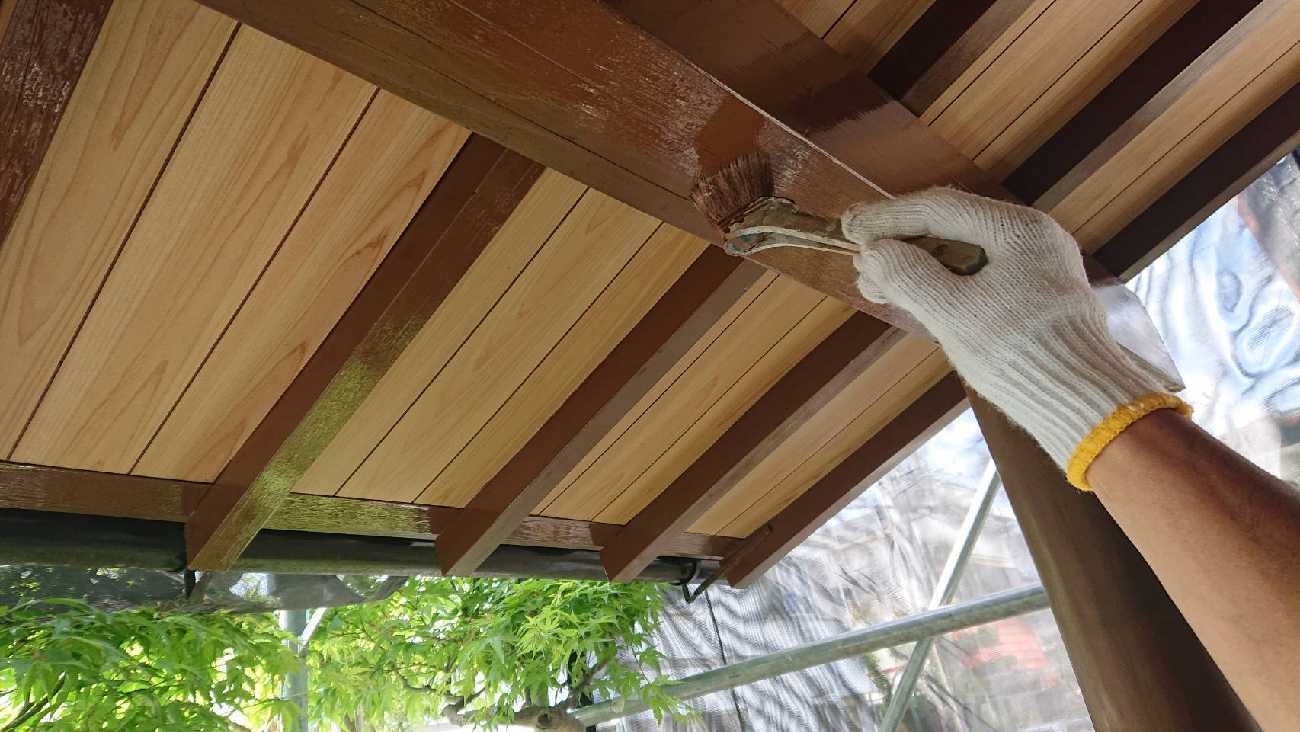 玄関前、木部、梁、支柱、垂木 2工程 ユメロック