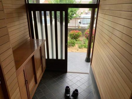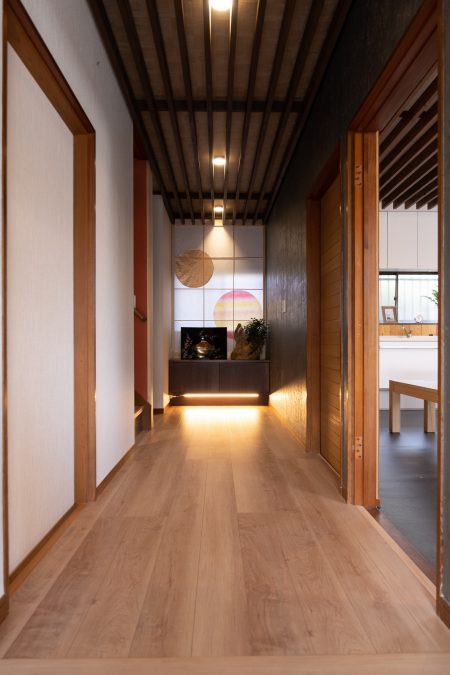 ■ホールの奥を改修し障子を張りました。殺風景だった廊下がオシャレ空間なホテル風な和風でモダンな空間に生まれ変わりました。