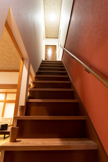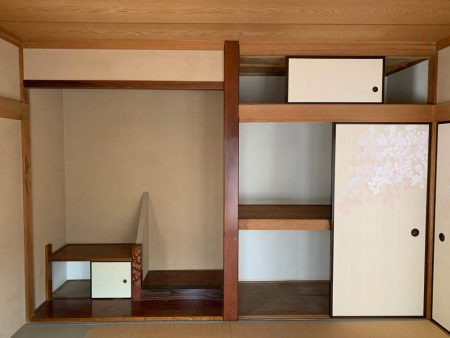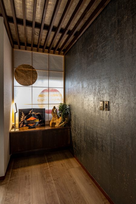 ニッチ空間を安らぎと高級感の空間に。階段下のニッチスペースを収納と和の色彩で安らぎの空間を演出しました。