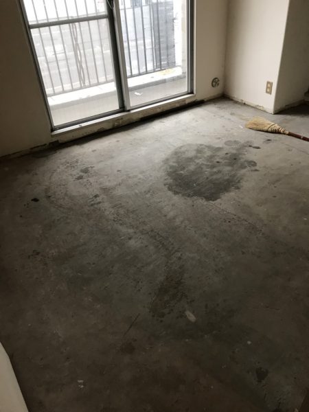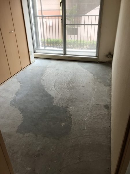壁の復旧床貼りを行いフローリング工事が終了しました(現場は養生をしています)。