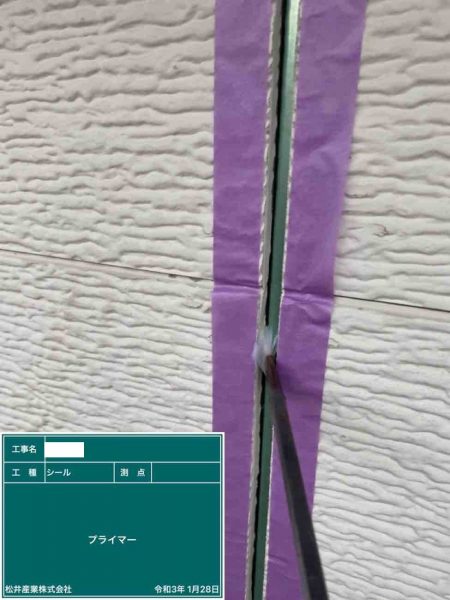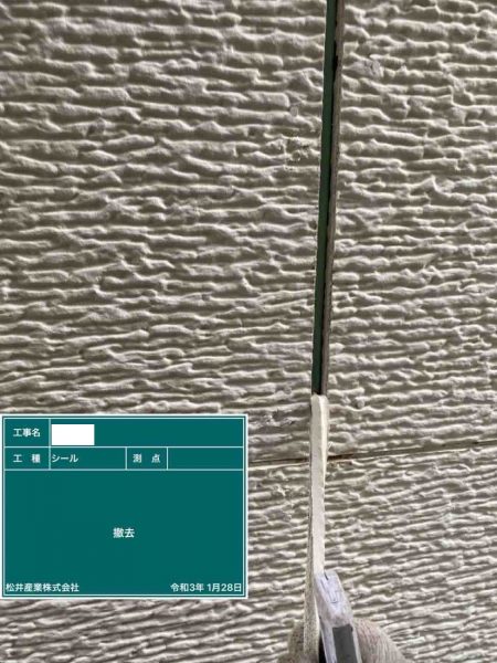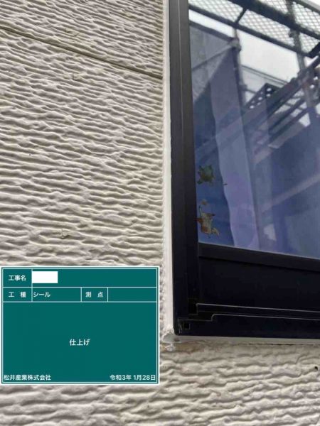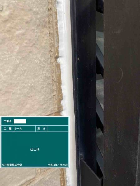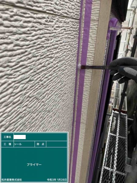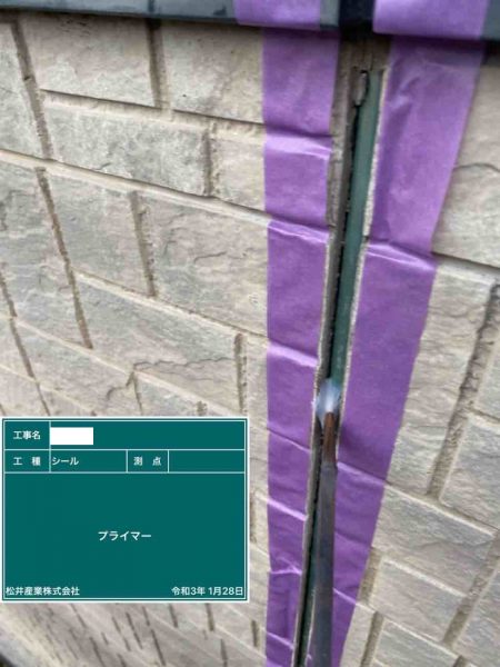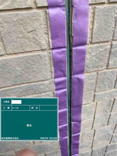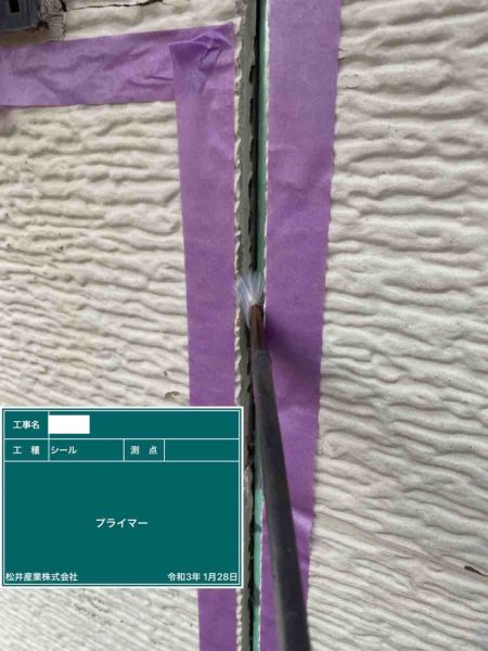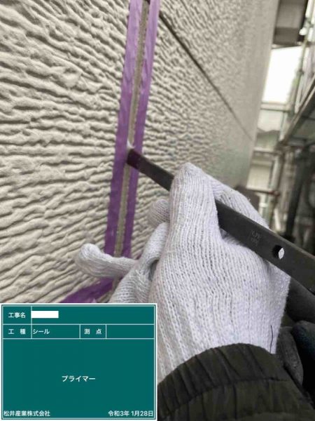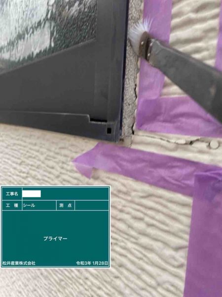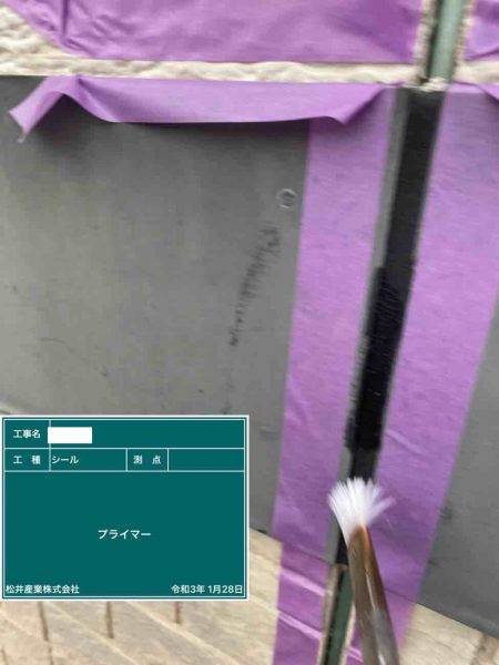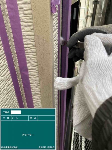 シール工事を行いました。既存シールを撤去後にプライマーを塗布し新しいシールを打ち替えます。養生期間を4日とりシールが固まった後に塗装工事を再開します。