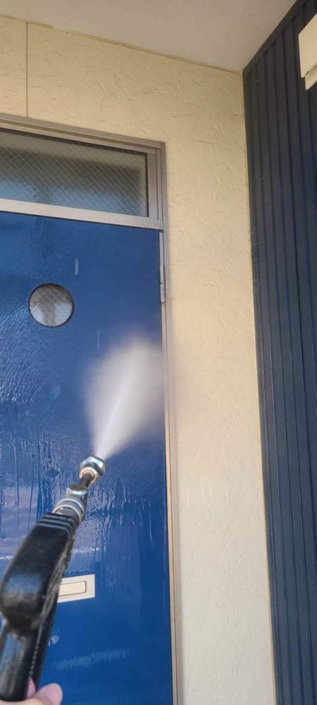 埼玉県三郷市N様邸外壁塗装工事現場は高圧洗浄を行いました。