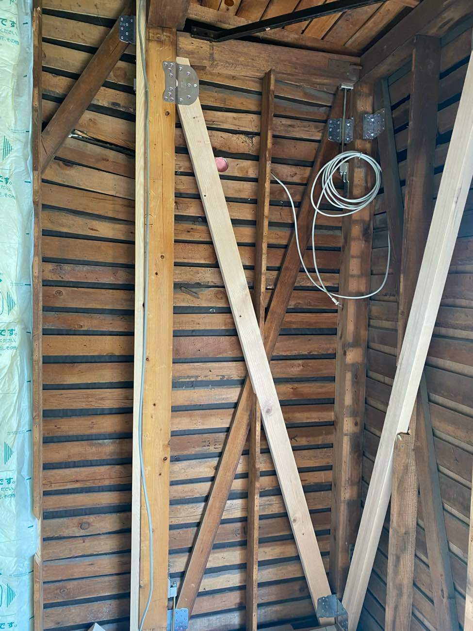 埼玉県三郷市M様邸は耐震補強工事を行いました。壁に筋交いをいれ金物で補強しています。