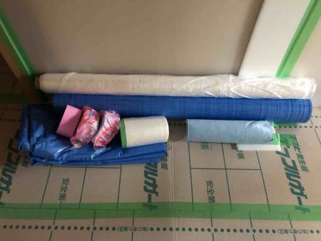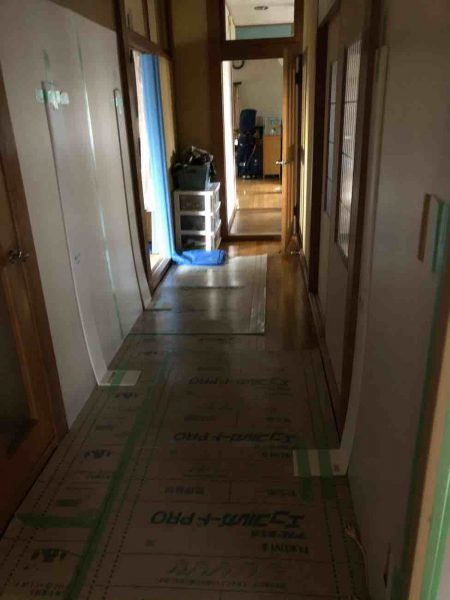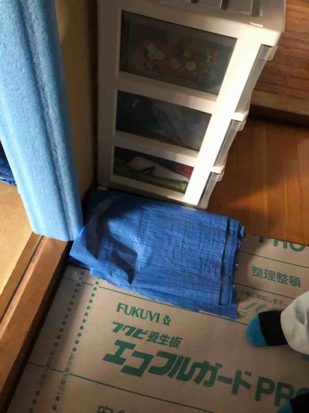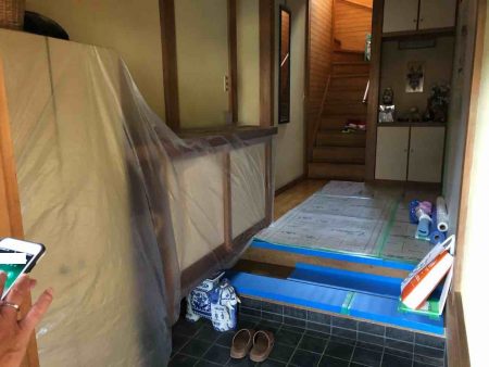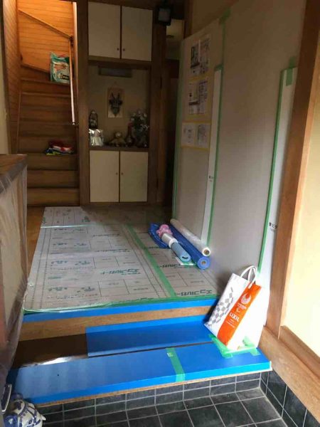 工事前の養生を行います。お客様の大事なお家を傷つけないよう注意しながら施工に入ります。
