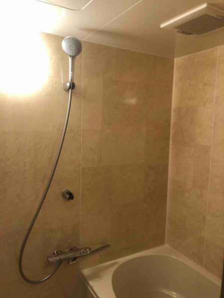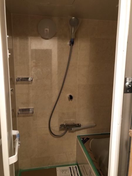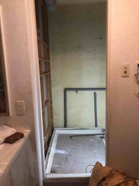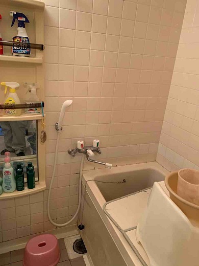 マンションのユニットバス交換です。共用部の養生や解体廃材の回収など段取りも行いました。早くお風呂を使えるように最適な工期で施工します。