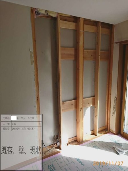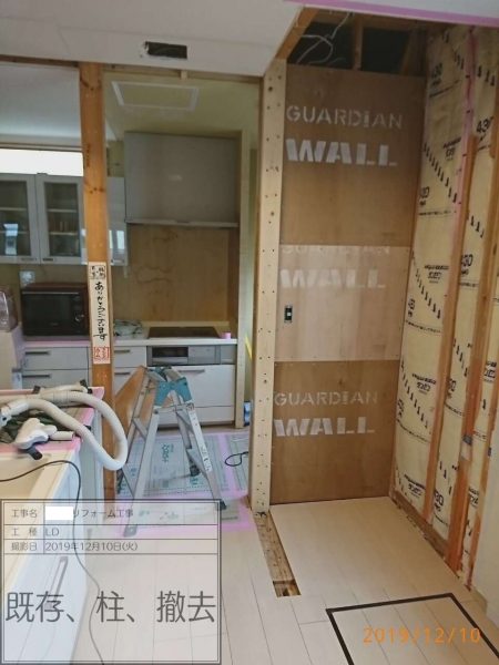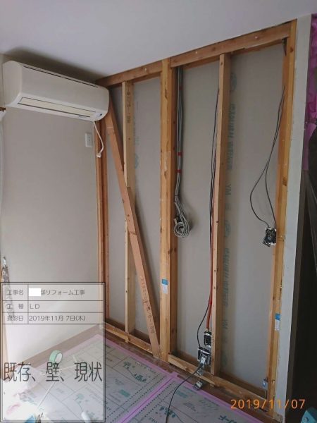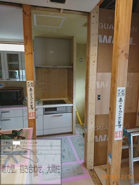 間取りが変化しますので耐震診断も行い耐震壁をつかった耐震補強をプラスしてのリノベーションとなりました。