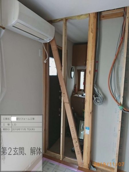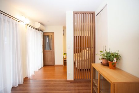 家族構成の変化により玄関を解体し既存のLDに加えました。