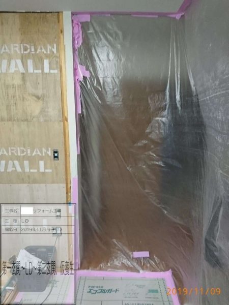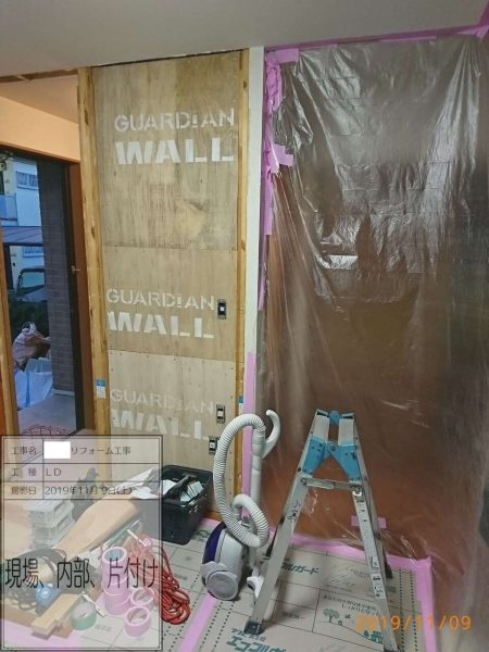 間取りの変更がありますので養生をして一部解体工事も始まっています。木工事が続きますが安全第一で行います。宜しくお願い致します。