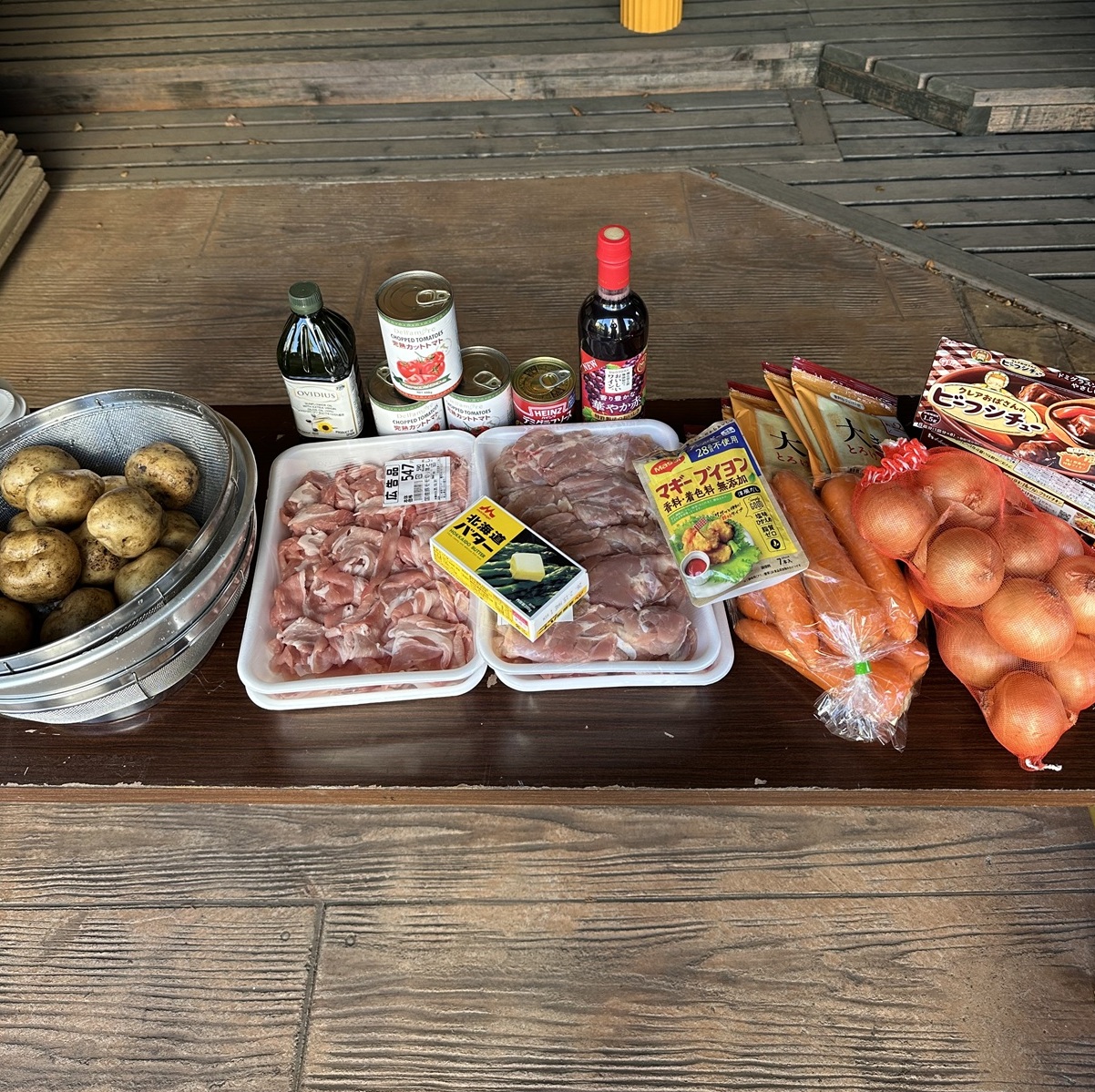 山盛りのジャガイモ、ニンジン、タマネギ、そしてたっぷりのお肉!美味しいシチューを作るぞ!という気合が伝わってきますね。