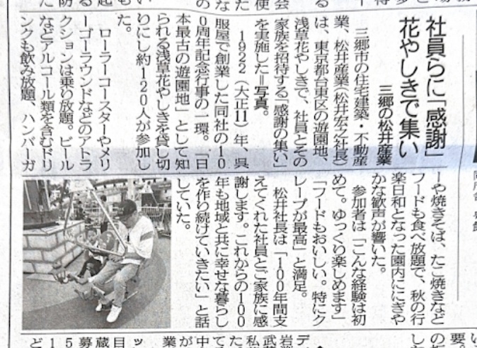 11月8日(土)付の埼玉新聞にて、去る11月1日(土)に開催した松井産業グループ「従業員感謝の集い」の模様を報道していただきました。