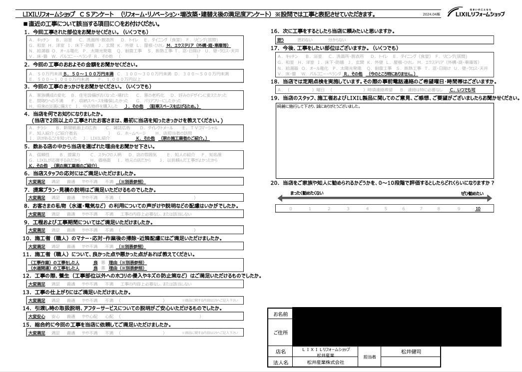 埼玉県三郷市K様邸外構工事のアンケートをいただきました。