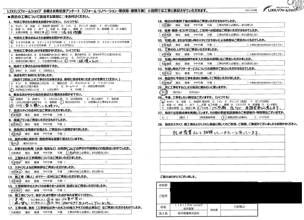 【埼玉県吉川市】O様邸波板工事「これからも松井産業さんと相談していきます」