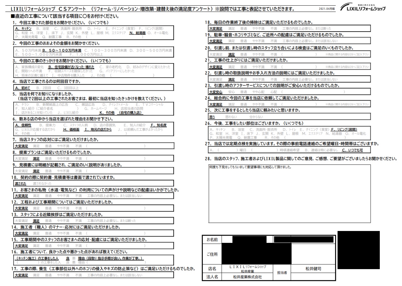 【埼玉県吉川市】K様邸キッチン工事アンケート「何度も下見をしてもらい要望事項にも対応」