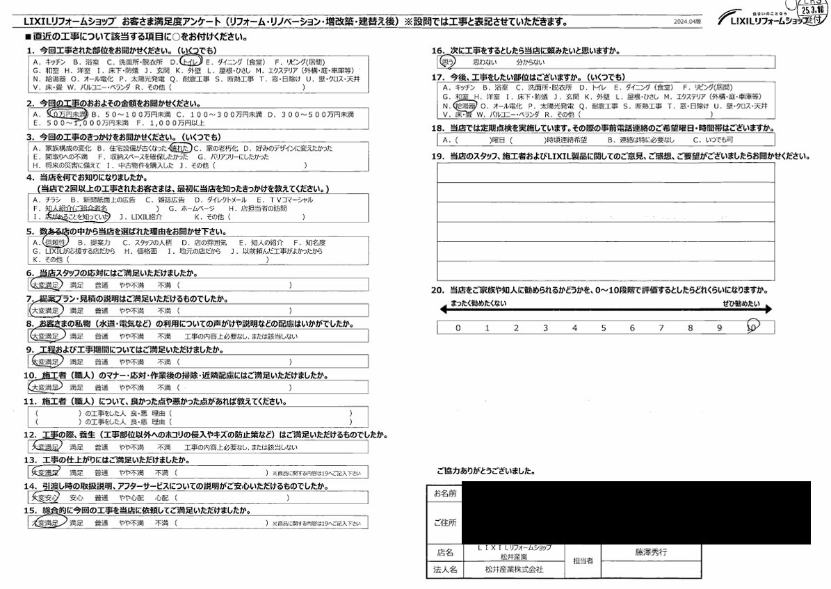 埼玉県吉川市N様よりアンケートをいただきましたのでご紹介させていただきます。「丁寧な対応と仕上がりに大満足」