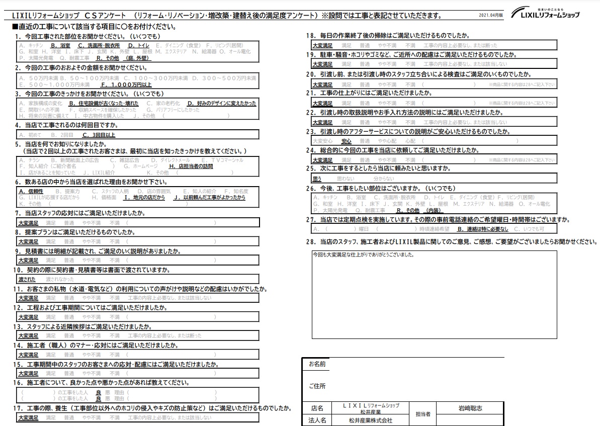 埼玉県三郷市S様邸外構工事アンケートをいただきました。