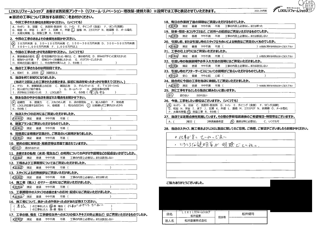 「仕事が早くて丁寧、いろいろな説明が明瞭で丁寧」