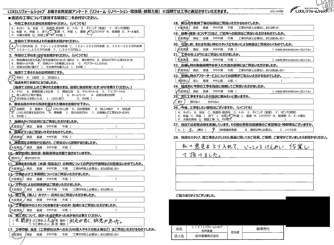 埼玉県三郷市S様邸玄関ドア工事は完了しアンケートをいただきました。