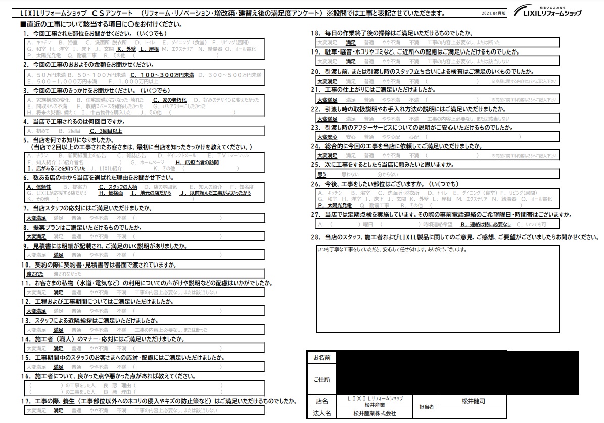 東京都足立区K様邸補助金対応 太陽光蓄電池工事が完了しアンケートをいただきました。