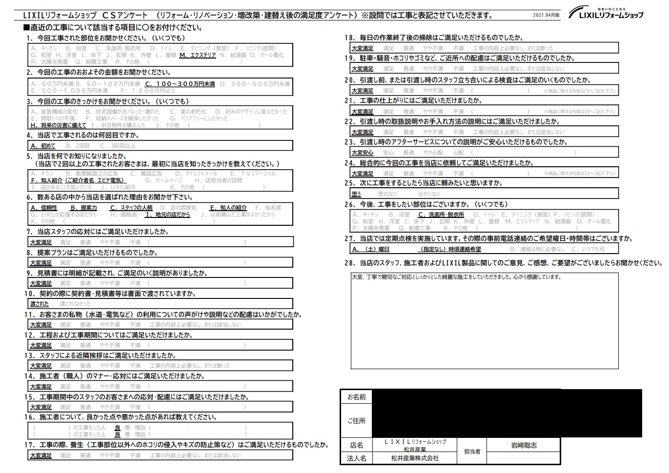 埼玉県吉川市U様邸外構工事が完了しアンケートをいただきました。