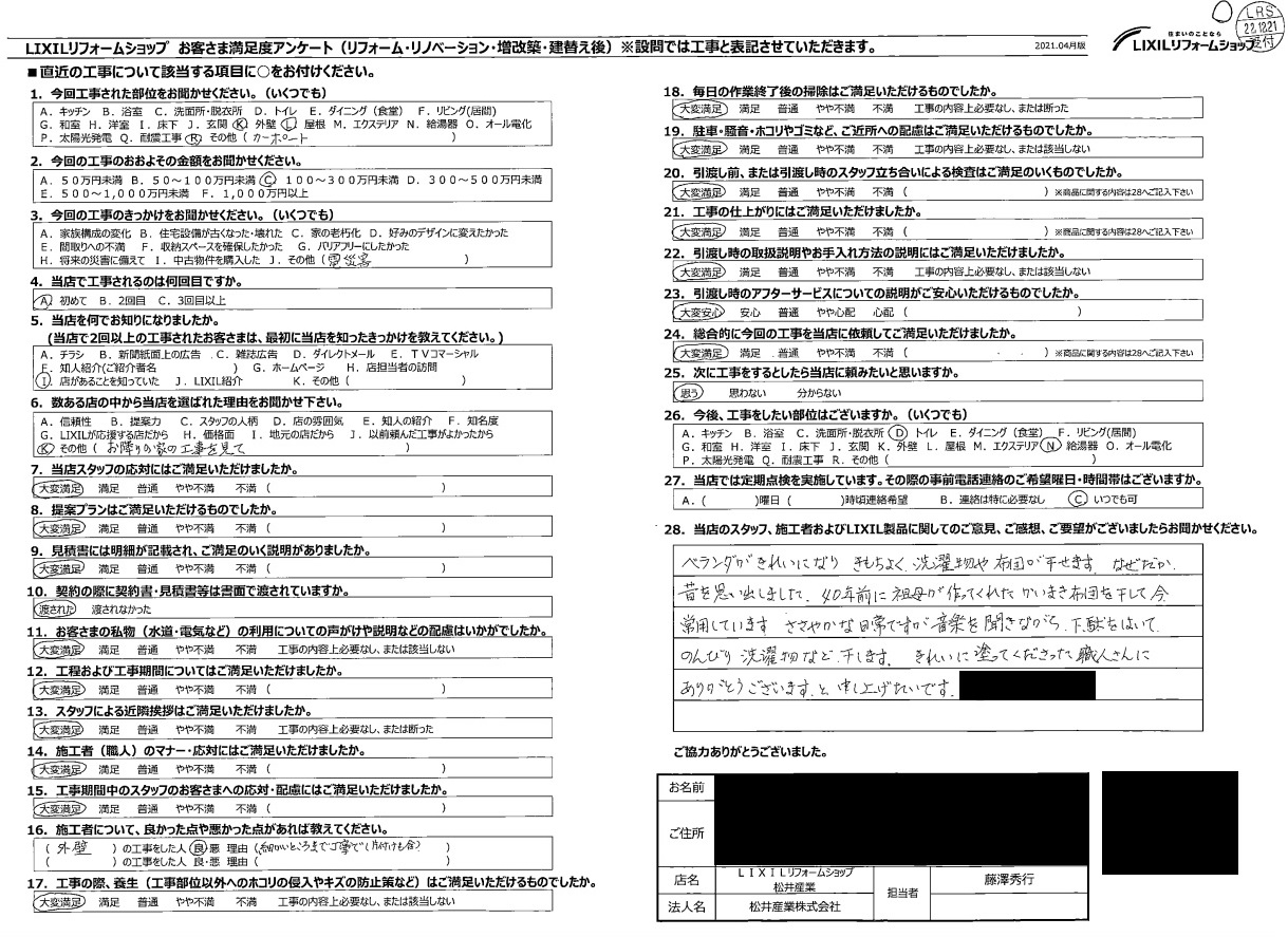 埼玉県北葛飾郡松伏町O様邸外壁屋根塗装工事が完了しアンケートをいただきました。