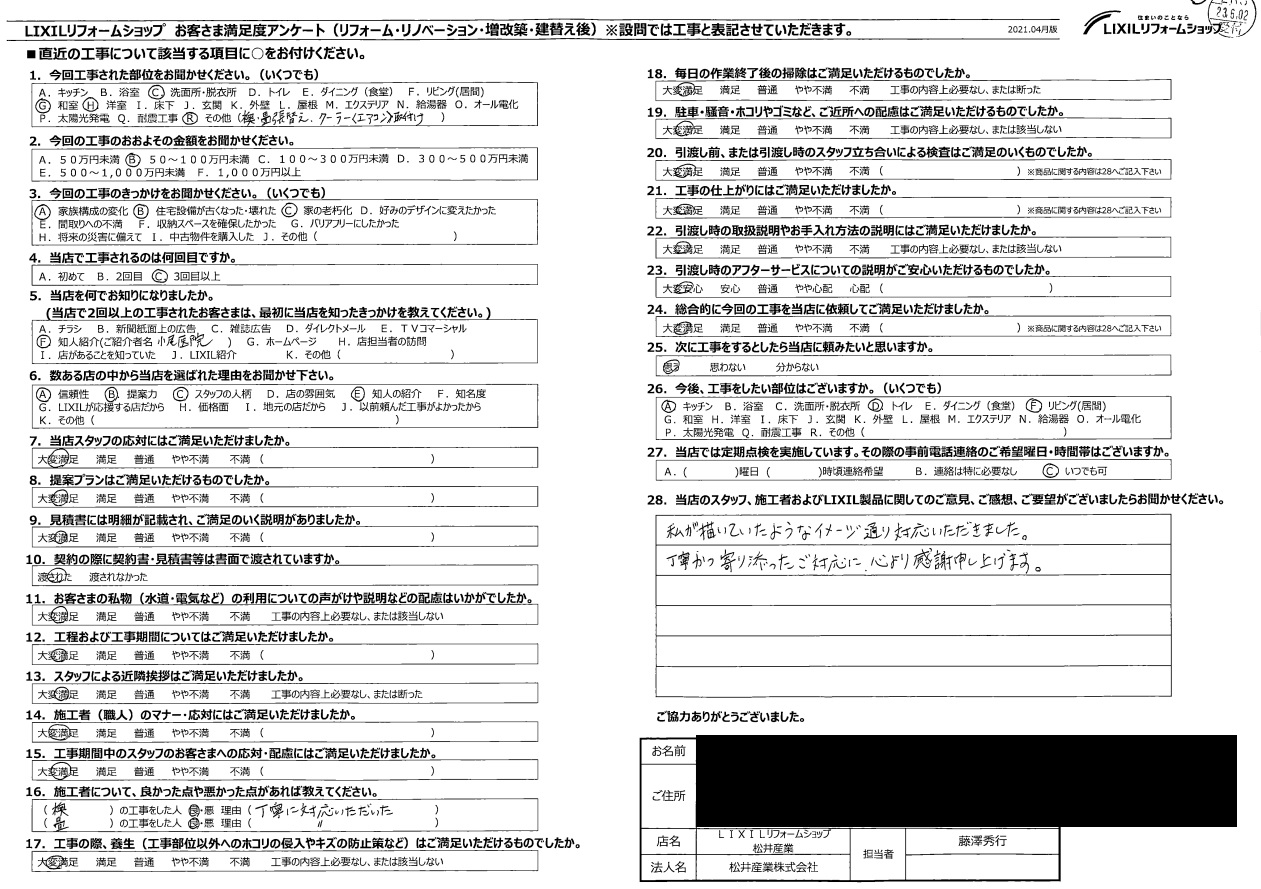 埼玉県越谷市S様邸内装工事が完了しアンケートをいただきました。