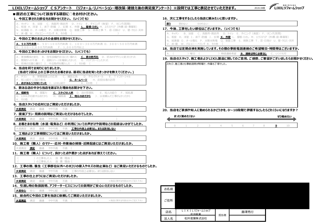 【埼玉県三郷市】K様邸屋根工事完了後のアンケート「スタッフ・施工者も事前説明が丁寧で安心しました」