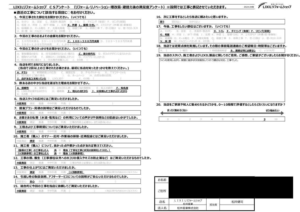 埼玉県吉川市外壁屋根塗装工事が完了しアンケートをいただきました。