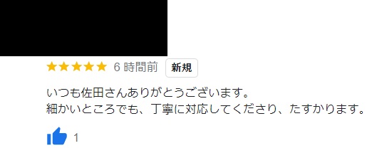 「いつも佐田さんありがとうございます。細かいところでも、丁寧に対応してくださり、たすかります」