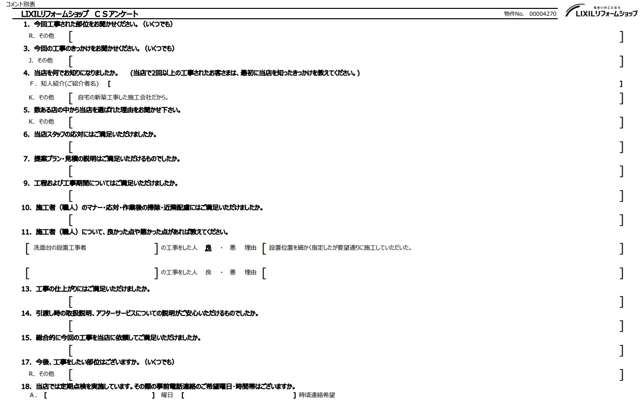 こんにちは!松井産業リフォーム館です。 今回は、埼玉県吉川市にお住まいのリピーター様、K様からいただいた「洗面化粧台リフォーム」のアンケートをご紹介します。